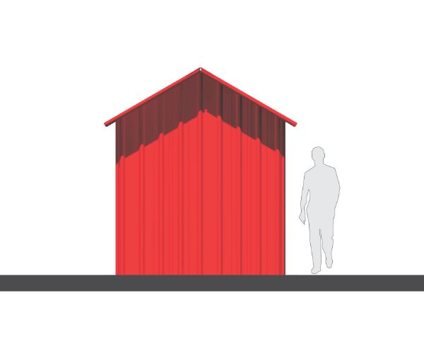 Corte interior en donde se puede apreciar los detalles estructurales (perfiles de hierro galvanizado), cerramientos laterales de chapa trapezoidal calibre 26 al igual que la cubierta superior. La composición de la cubierta puede ser modificada según requerimientos solicitados