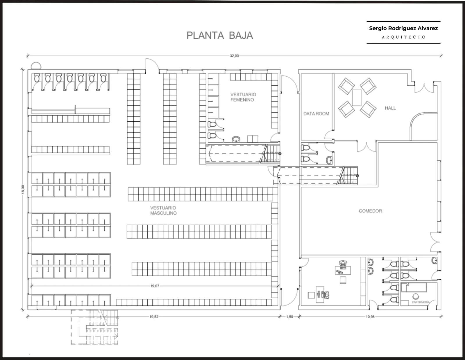 La temática del proyecto consiste en vestuarios para operarios y oficinas para el sector administrativo y comercial. El área total a ejecutar es de 1.152m2.